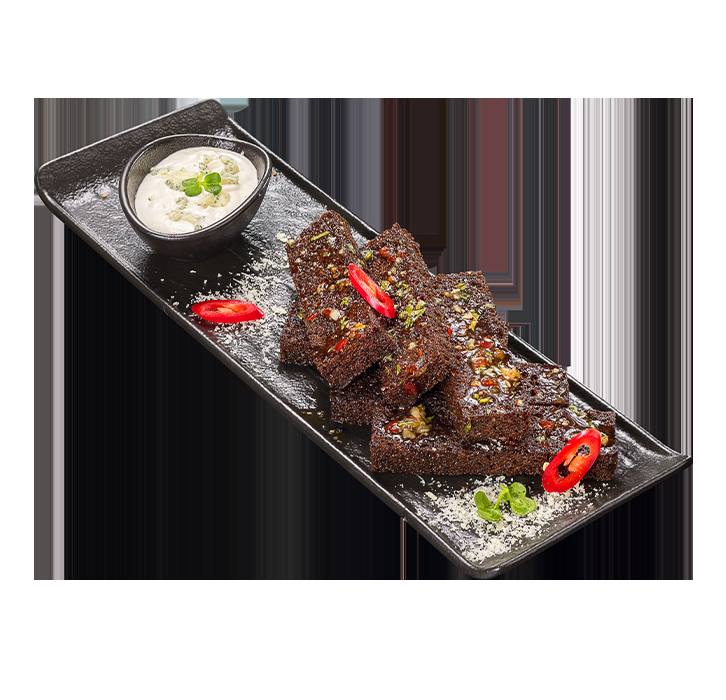 Хрустящие чесночные гренки из ржаного хлеба с соусом блю чиз.