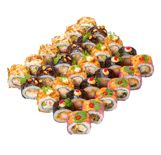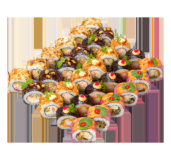 Сет из роллов: Чикен Том ям, Эби Куранчи, Чикен Рору, Кани Блючиз, Кани Киюри. 30 шт.