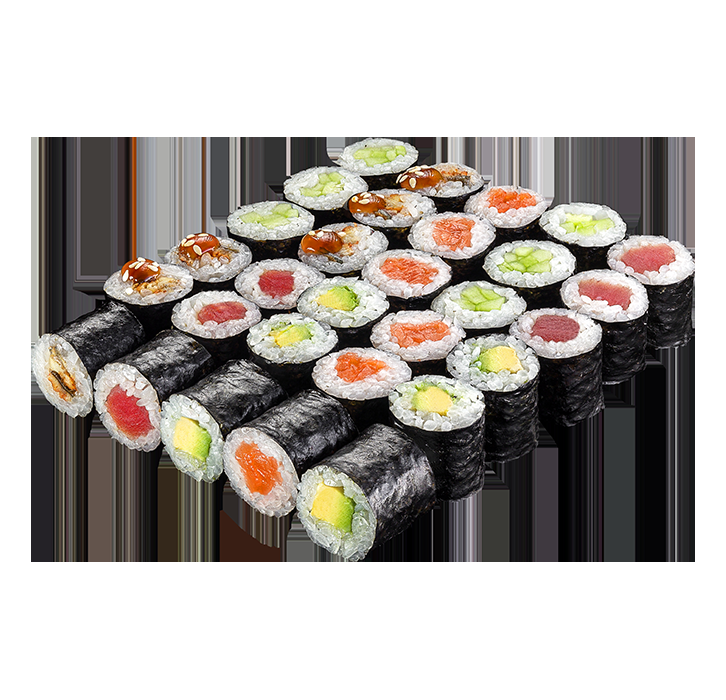 Каппа маки, Авокадо маки, Унаги маки, Сяке маки, Магуро маки. 30 шт.