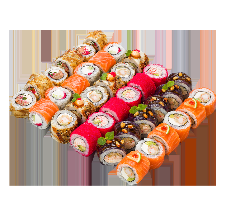 Сет из роллов: Эби Шарп, Кани Блючиз, Калифорния, Сяке Бонито, Унаги Кранч и Филадельфия Лайт. 36 шт.
