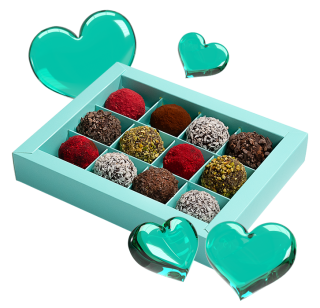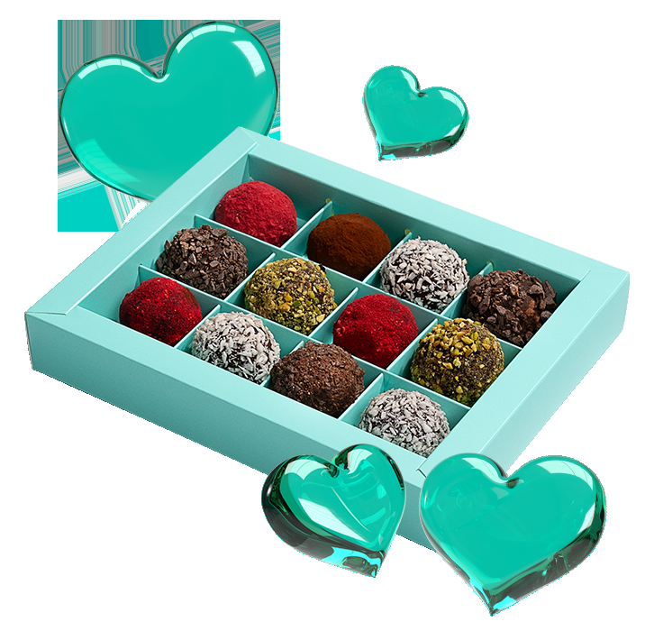 Подарок для самых любимых, созданный вручную. Классические французские трюфели с начинкой из шоколадно-орехового пралине, приготовленные по авторскому рецепту. Украшаются посыпкой из кокоса, малины, какао, фисташек и горького шоколада.