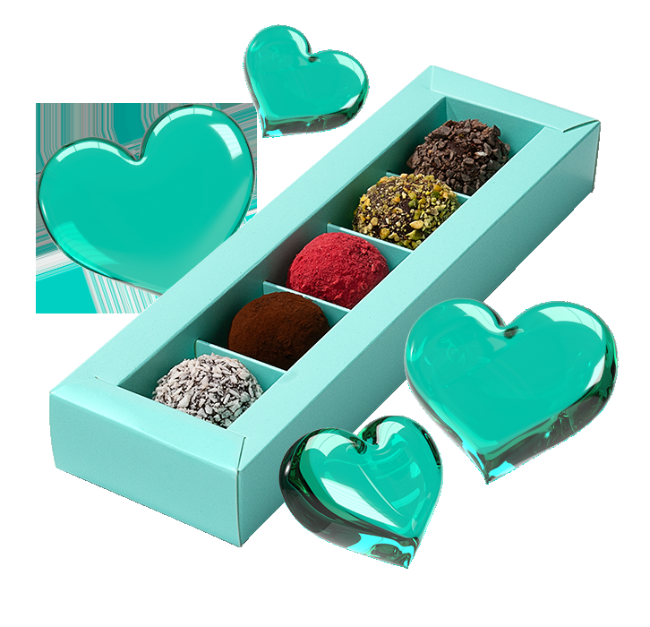 Подарок для самых любимых, созданный вручную. Классические французские трюфели с начинкой из шоколадно-орехового пралине, приготовленные по авторскому рецепту. Украшаются посыпкой из кокоса, малины, какао, фисташек и горького шоколада.